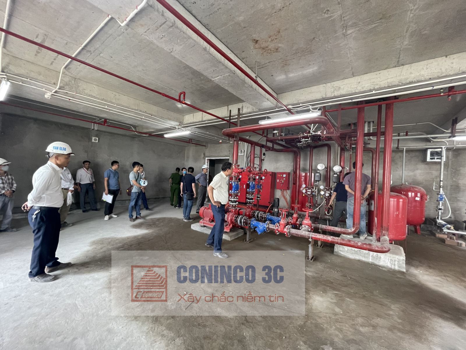 Berriver-390 Nguyen Van Cu project includes 3 apartment buildings N02, N04, and N05 by Coninco 3C Joint Stock Company in charge of construction and equipment installation supervision consultancy. After more than 2 years of many difficulties and impacts due to the outbreak of the Covid-19 epidemic, the investor, CONINCO 3C consultant team, and contractors have made efforts to implement and try to accelerate the completion of the project. Currently, the project is entering the final stage of carrying out the overall acceptance work to serve the handover of the project and put it into use. Recently, the Investor has organized the inspection and acceptance of the fire prevention and fire fighting items performed by the Fire and Rescue Police Department. The test was completed and achieved positive and good results. Here are some updated photos of the project's implementation, inspection, and acceptance: