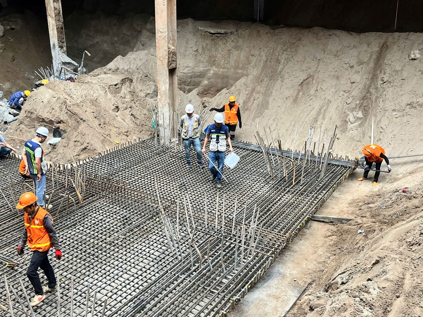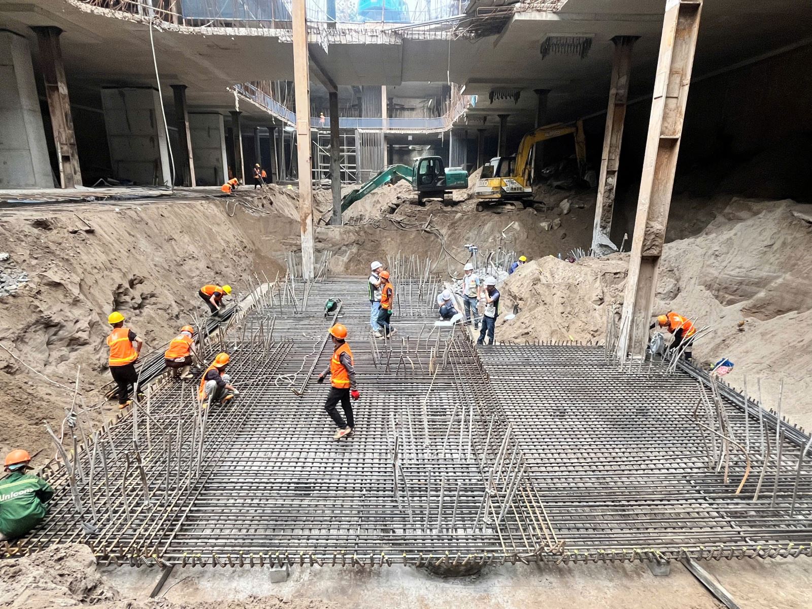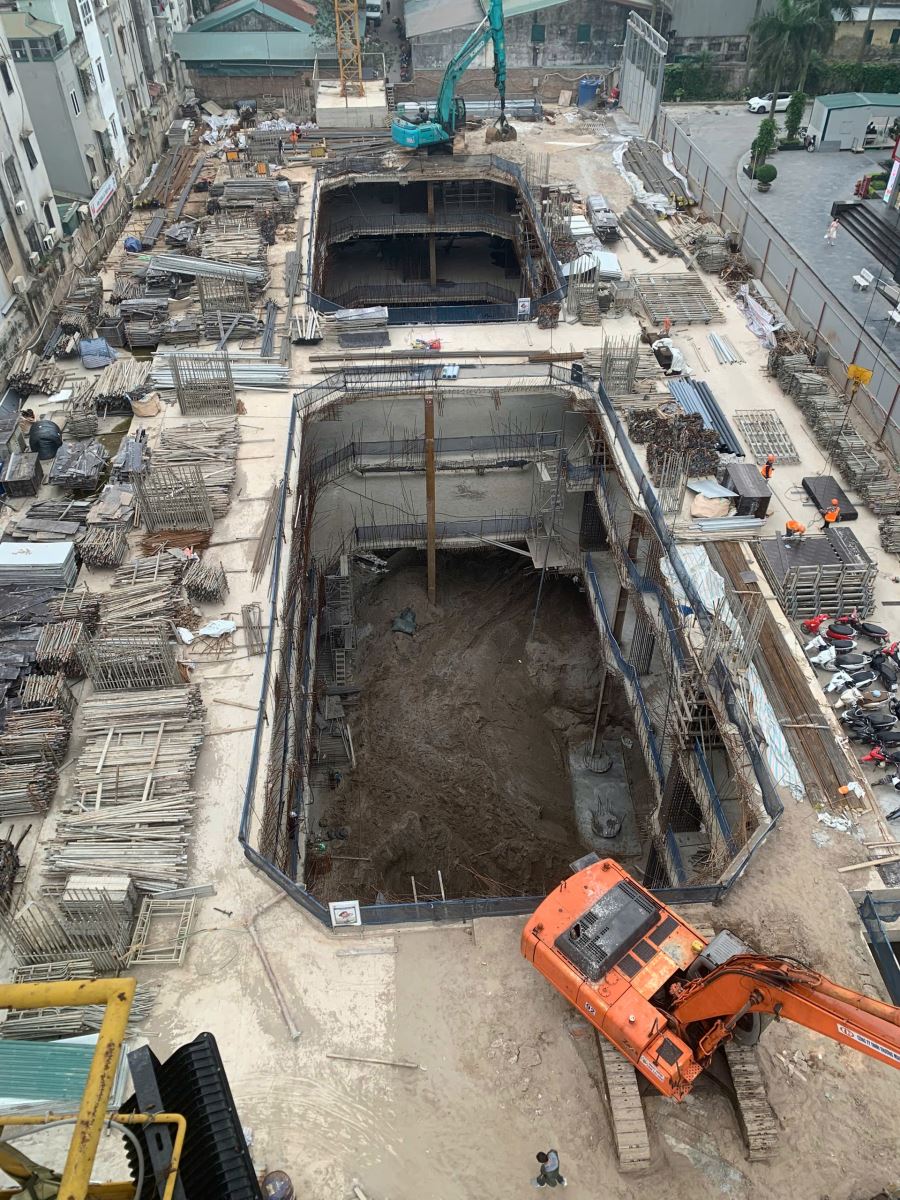 🏗 Tiến độ thi công dự án ổn định, kiểm soát tốt. Dự án hiện đang tập trung thi công phần ngầm, đặc biệt là tầng hầm B3. Các hạng mục như đào đất đài móng, thi công đài móng, nền hầm và kết cấu cột đang được triển khai đồng bộ.