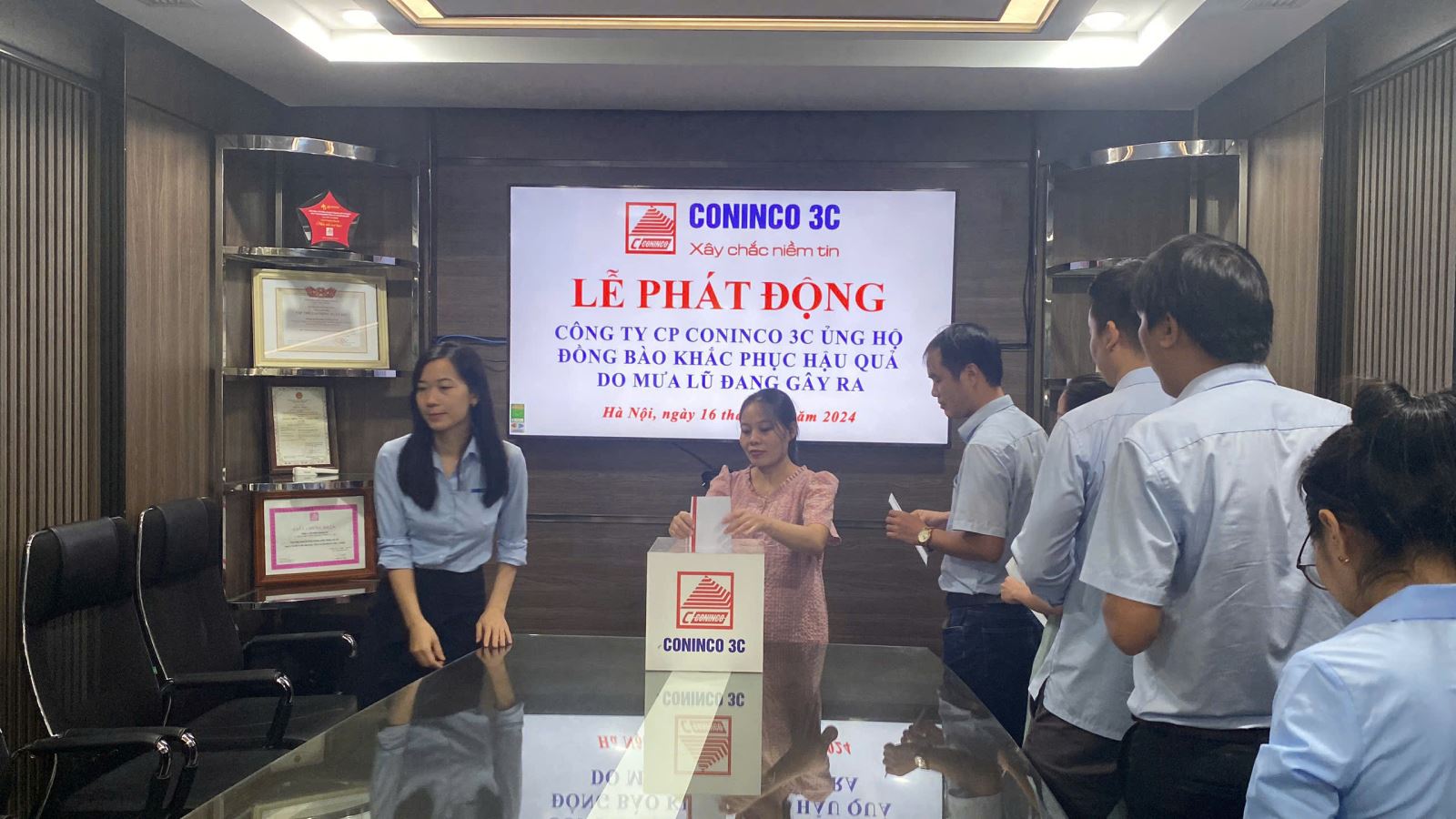 Hưởng ứng lời kêu gọi, CBCNV Công ty CP CONINCO 3C đã nhiệt tình đóng góp, ủng hộ. Số tiền thu được sau khi quyên góp, Ban chấp hành Công đoàn công ty đã chuyển toàn bộ vào tài khoản của Ủy ban TƯ MTTQ Việt Nam ngày 19/9/2024