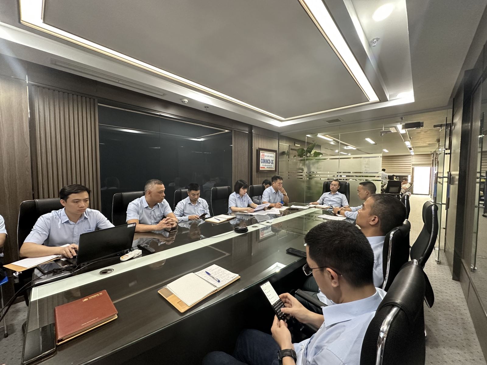Ngày 8/4/2024, Tại văn phòng công ty đã diễn ra cuộc họp giao ban Quý I, Tổng kết đánh giá hoạt động sản xuất 3 tháng đầu năm CONINCO 3C. Tham gia cuộc họp gồm Ban Tổng Giám đốc, ban Giám đốc các trung tâm và các chủ trì dự án dưới 2 hình thức offline và online.