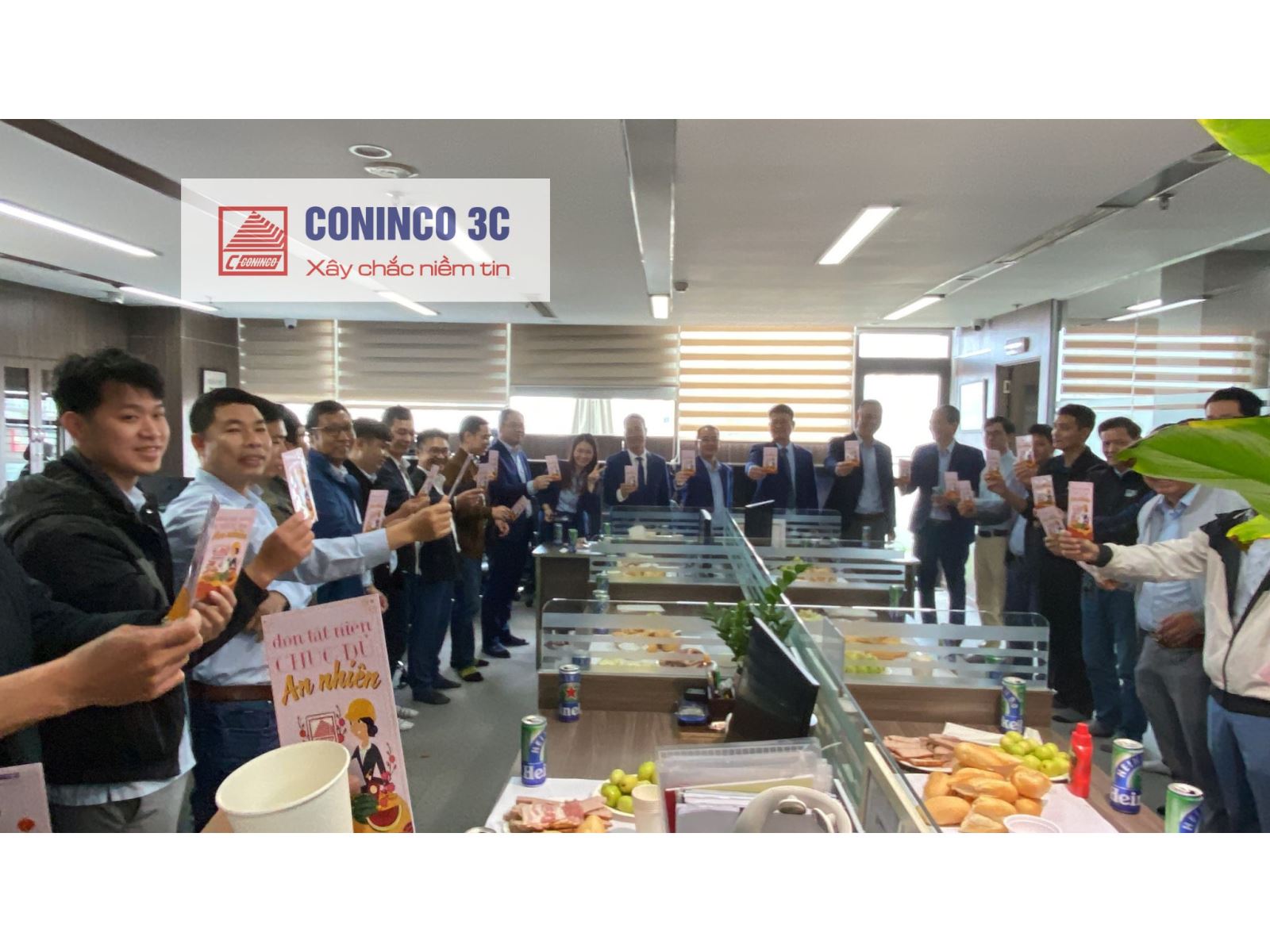 Ngày làm việc đầu tiên của năm mới Giáp Thìn, nhưng đã thành truyền thống không chỉ của riêng CONINCO 3C mà của nhiều doanh nghiệp, tổ chức khác. Ngày đầu năm mới là ngày “Khai xuân” để tất cả mọi người cùng nâng ly rượu mừng, gửi tới nhau những lời chúc, trao nhau chiếc lì xì may mắn và cùng trò chuyện, chia sẻ những câu chuyện, kế hoạch, mong ước trong năm tới.