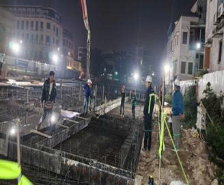 All construction activities are being implemented in a synchronized and systematic manner, strictly complying with approved procedures and under tight control throughout execution. Concrete casting works for beams and slabs are proactively organized, including night shifts when necessary, to ensure the overall project schedule.