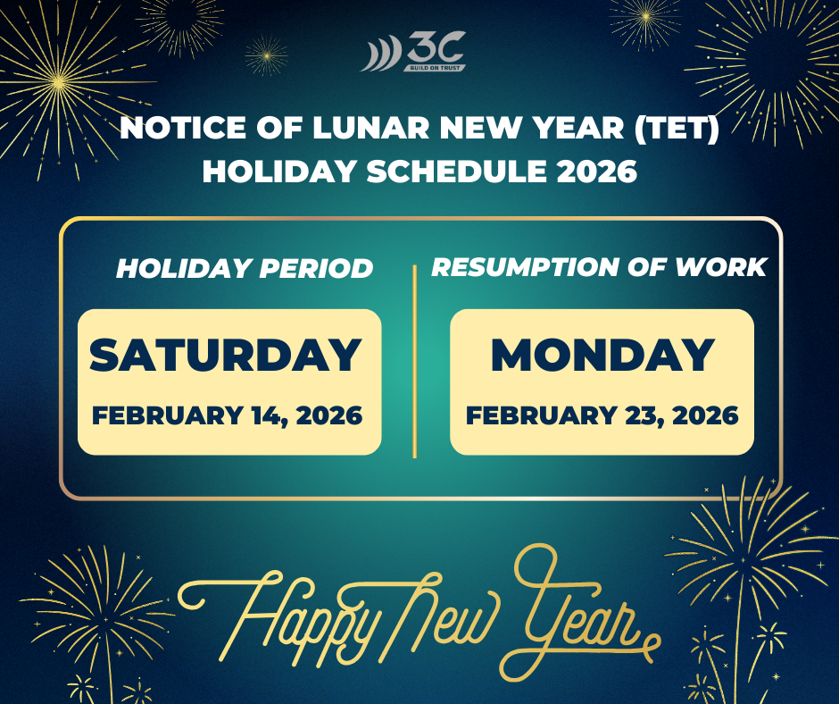 3C Consulting Joint Stock Company respectfully announces our Lunar New Year (Tet) Holiday Schedule 2026 as follows: