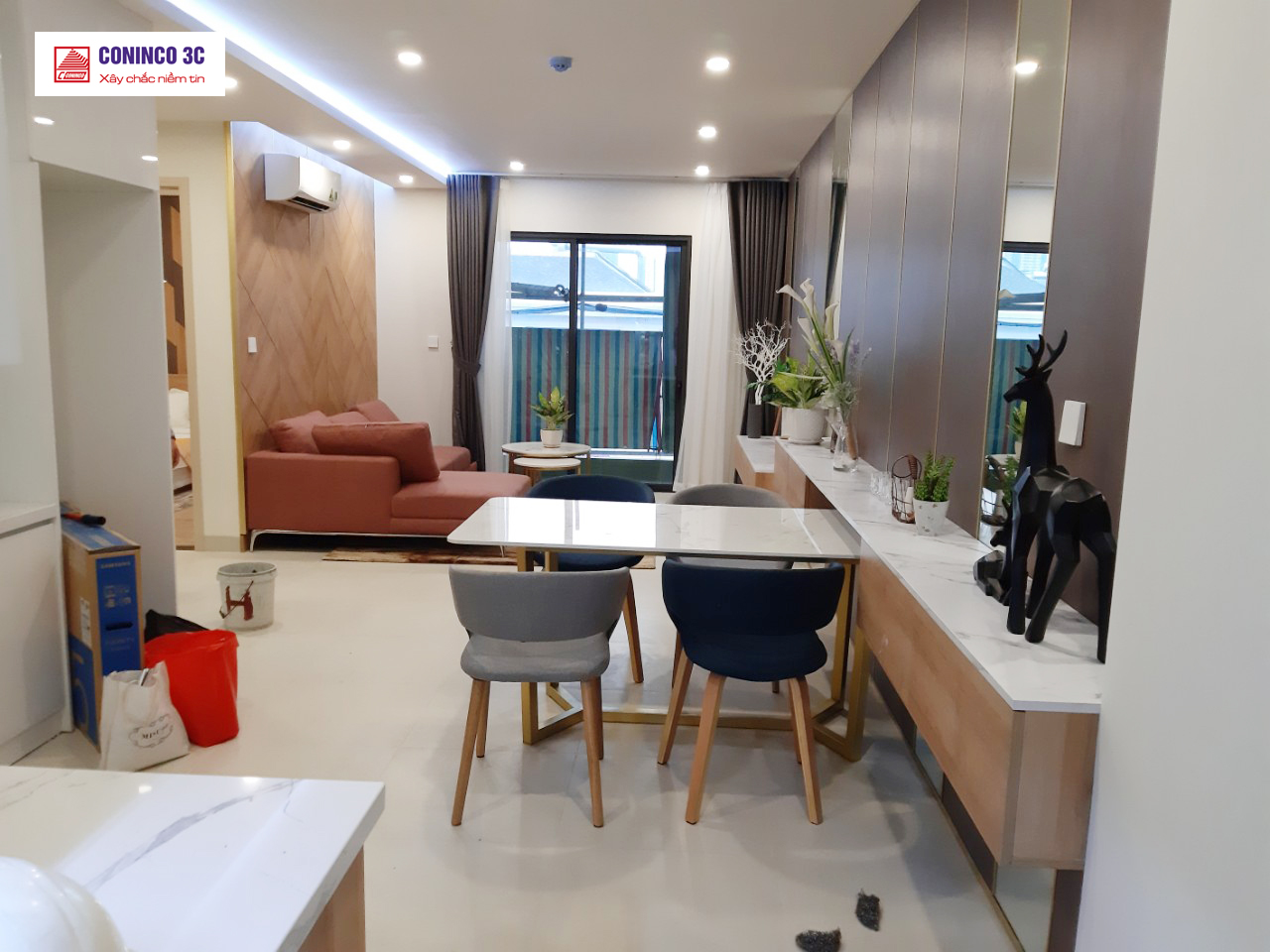 1. Căn hộ mẫu: Đã hoàn thiện nội thất 2 căn, đang triển khai 3 căn còn lại.