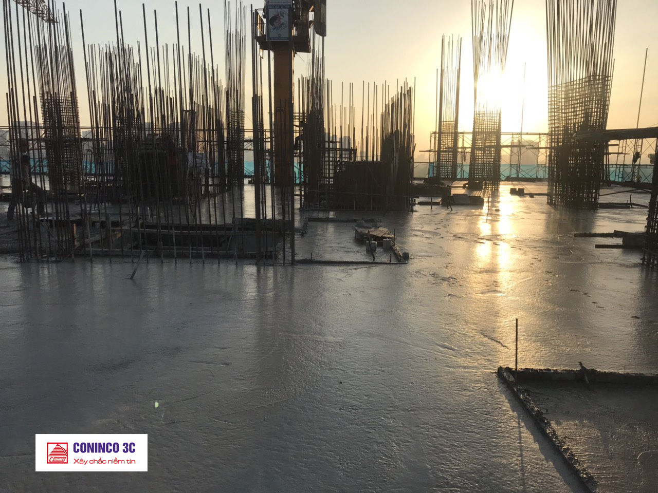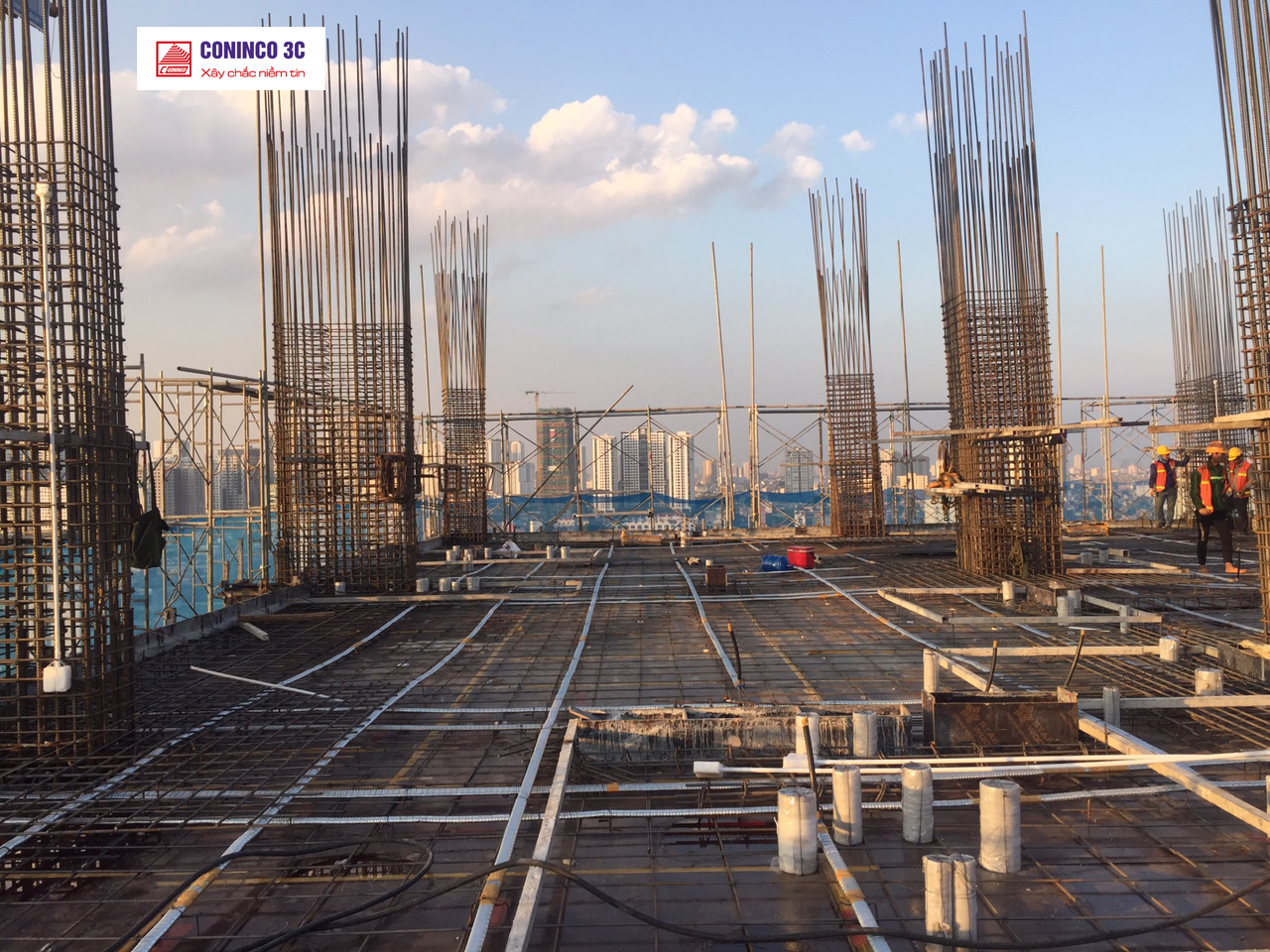 Đổ bê tông dầm sàn Dự ứng lực đến tầng 19.